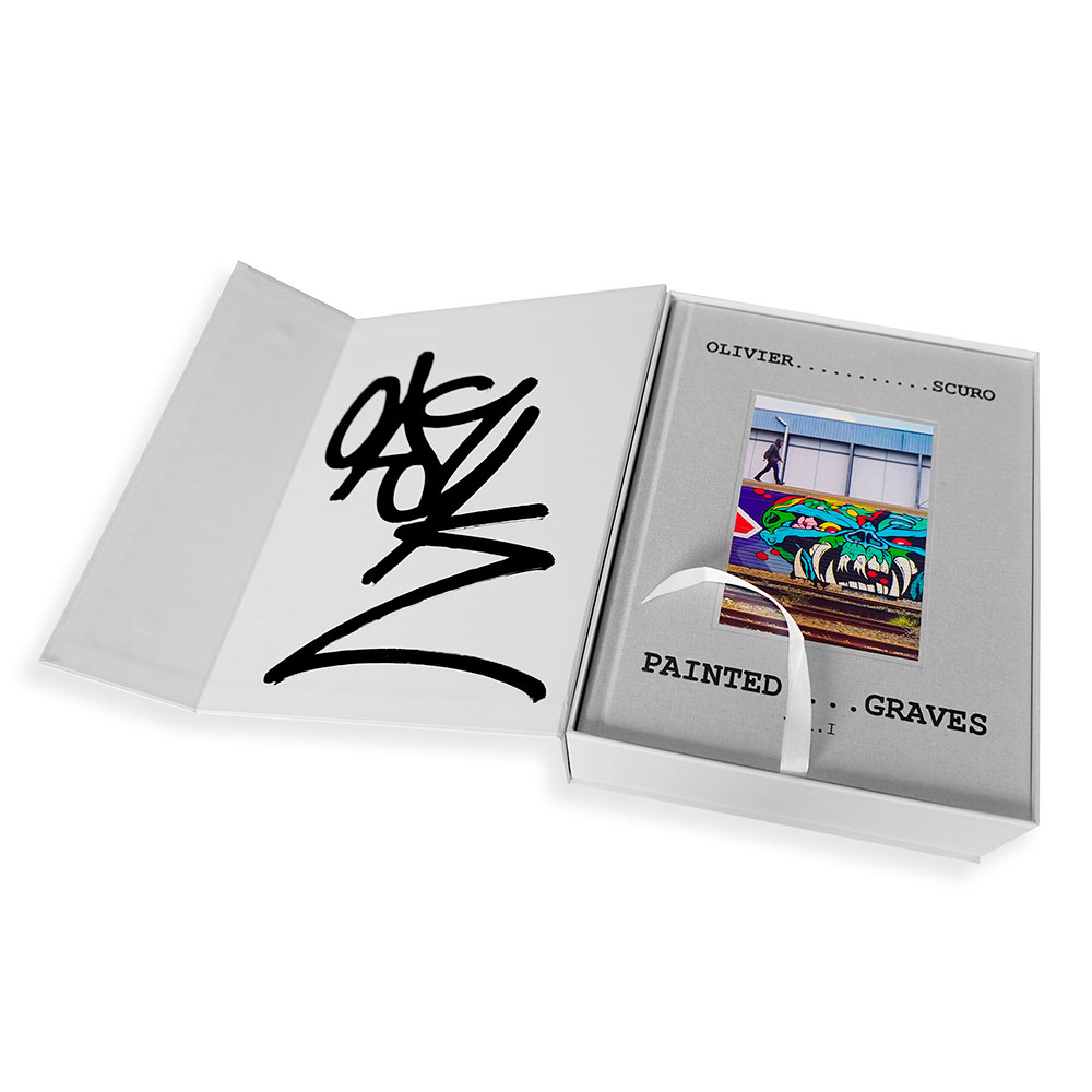 Produced in a limited edition of 660 copies, the collector’s box set brings together Painted Graves Volume 1, Painted Graves Volume 2, and Painted Graves – Relics in a luxurious case. Relics completes Painted Graves with 7 unpublished texts and 101 photos, compiled in a 160-page full-color book available exclusively in the box set.
